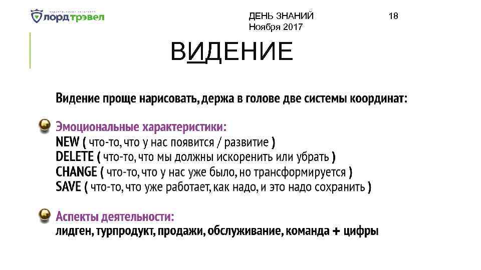 ДЕНЬ ЗНАНИЙ Ноября 2017 ВИДЕНИЕ 18