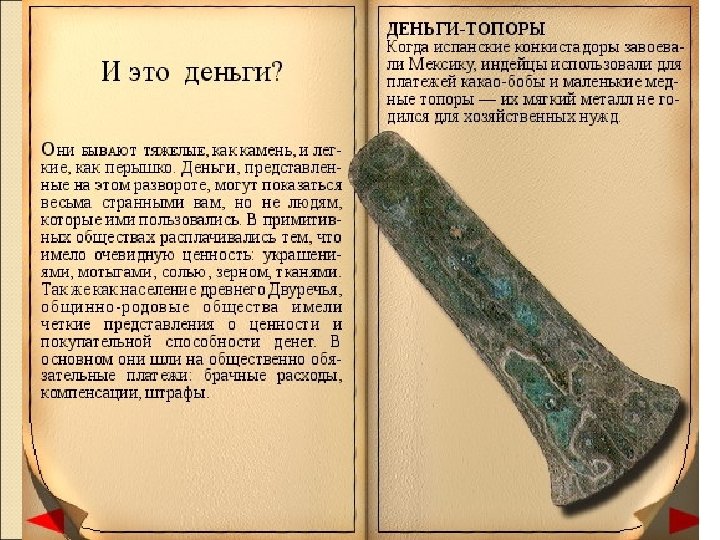 Почему золото стало выполнять роль денег? само являлось товаром; пользовалось высоким спросом; обладало природными качествами, удобными для всеобщего эквивалента: ◦ ◦ однородность (одинаковость качества); хорошая делимость и соединяемость; безотходность (связано с предыдущим); портативность (высокая стоимость при малом объеме). ; ◦ удобство транспортировки; ◦ сохраняемость (износостойкость).