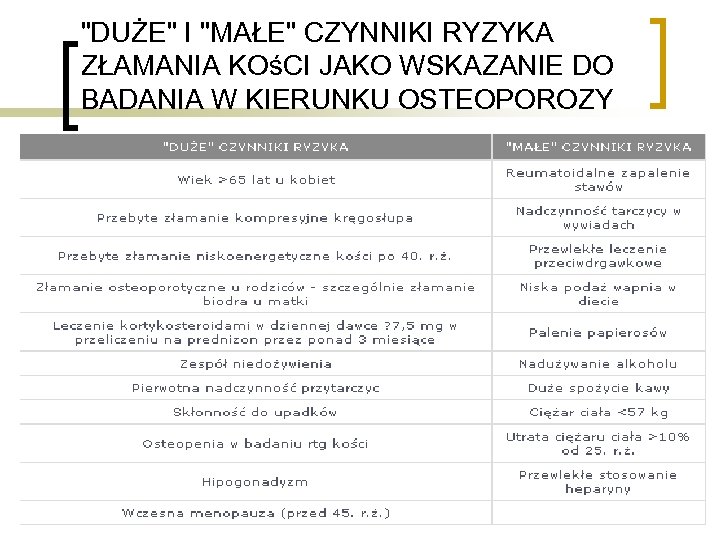 "DUŻE" I "MAŁE" CZYNNIKI RYZYKA ZŁAMANIA KOśCI JAKO WSKAZANIE DO BADANIA W KIERUNKU OSTEOPOROZY