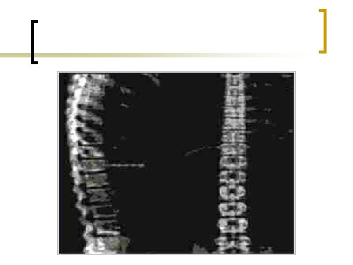 Osteopenia n Niska gęstość kości. Wartość pomiaru gęstości minerału kostnego metodą DEXA zawierająca się pomiędzy 1, 0 a 2, 5 odchyleń standardowych poniżej średniej dla młodych zdrowych dorosłych n (T-score pomiędzy -1 a -2, 5).
