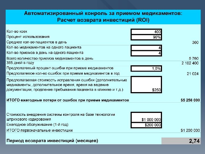 Контроль за приемом медикаментов с использованием штриховых кодов 5 ПРАВИЛЬНЫХ ВЕЩЕЙ» « 1. Идентифицировать ПРАВИЛЬНОГО пациента 2. Подтвердить ПРАВИЛЬНОСТЬ лекарства 3. Подтвердить ПРАВИЛЬНУЮ дозировку 4. Подтвердить ПРАВИЛЬНЫЙ способ применения 5. И ПРАВИЛЬНОЕ время