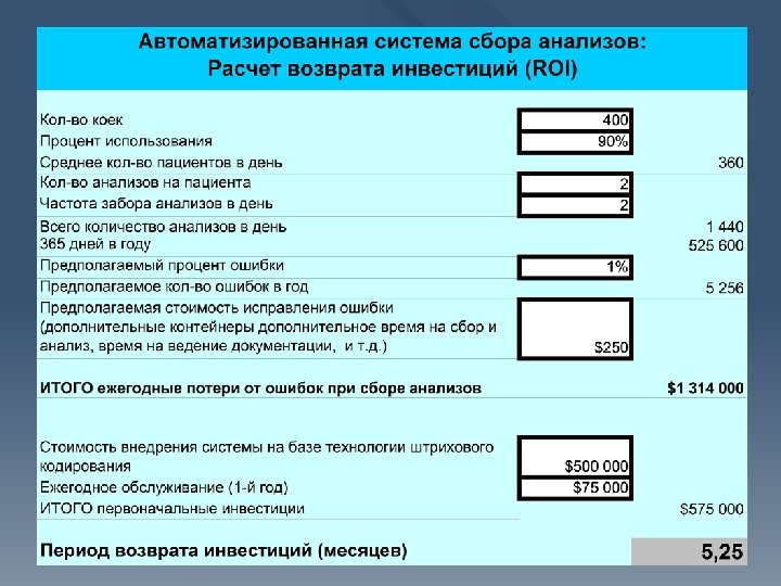 Система сбора анализов с применением штрихкода Компоненты: Контейнер для образца Этикеточный принтер Сканер штриховых кодов Прикладное ПО = Правильный образец Правильный контейнер Правильное количество Правильное время Правильный пациент Правильный лабор. тест Правильные результаты