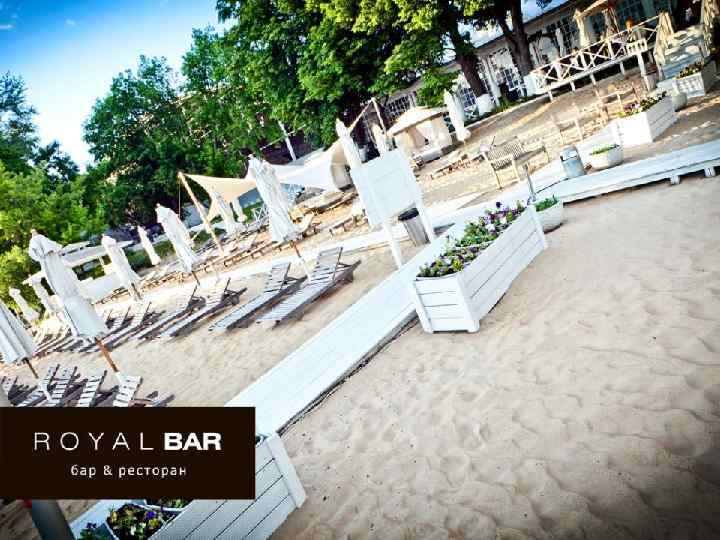 О площадке • Royal Bar является одним из самых престижных ресторанов Москвы и имеет банкетную площадку на 200 – 400 человек. Royal Bar дарит гостям ощущение уединенности и безмятежности, позволяя забыть о городской суете и полностью сосредоточиться на проходящем мероприятии. • Из окон Royal Bar открывается чудесный вид на Покровский берег. За 4 года Royal Bar стал одной из самых известных и любимых светских площадок, где регулярно проводятся конференции, презентации и выставки. • Общая территория Royal Bar – 1 га – позволяет проводить мероприятия не только в помещении, но и на берегу Химкинского водохранилища • С одной стороны причала Royal bar распологается отель на воде – Royal Beach Hotel 4*, в котором могут с удобством разместиться приглашенные специалисты.