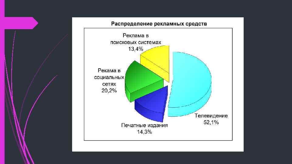 Анализ рекламного рынка в средствах массовой информации. Рекламные медиа Затраты рекламодателей на рекламу (млрд. руб) Изменение объема рекламы, % Телевидение в т. ч. эфирное кабельно-спутниковое 30. 1 -30. 6 29. 8 -30. 3 -22% -21% 0. 34 -59% Радио Печатные СМИ в т. ч. газеты журналы рекламные издания Наружная реклама Интернет 2. 4 -2. 6 4. 8 -5. 0 1. 3 -1. 4 2. 3 -2. 4 1. 2 -1. 3 7. 0 -7. 3 18. 1 -25% -34% -28% -34% -37% -27% 9% в т. ч. медийная реклама 2. 8 -18% контекстная реклама* 15. 0 -15. 7 16% Прочие ИТОГО 0. 64 63. 4 -63. 9 -29% -17%
