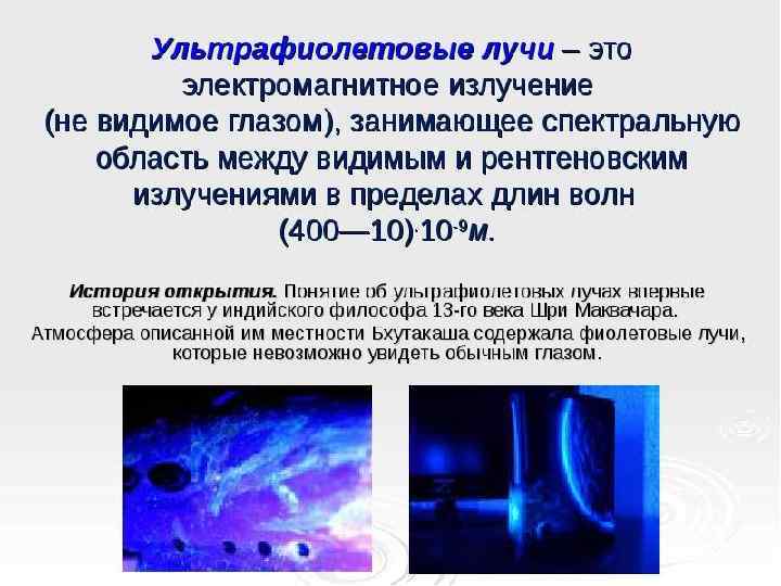 ИСТОРИЯ РАЗВИТИЯ УЛЬТРАФИОЛЕТОВЫХ ЛУЧЕЙ В 1801 г. немецкий физик Иоганн Риттер (1776 -1810), открыл ультрафиолетовые лучи. Исследуя спектр, он открыл, что за его фиолетовым краем имеется область, создаваемая невидимыми глазом лучами.