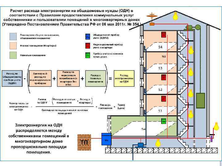 Распределение ОДН (пример) Расход по ОДПУ Суммарный расход по квартирам и нежилому помещению ОДН по дому Площадь жилых и нежилых помещений 5 000 к. Втч 4 550 450 930 к. Втч кв. м Номер квартиры Площадь помещения, кв. м. Расход за месяц, к. Втч ОДН «по старому» пропорционально расходу, к. Втч ОДН «по новому» , пропорционально площади, к. Втч Изменение ОДН, к. Втч 1 2 3 4 5 6 7 8 9 Магазин 100 100 70 40 40 300 0 800 250 50 250 800 250 50 0 2 100 0 147 46 9 46 147 46 9 0 - 48 48 37 19 19 145 48 -99 2 39 -9 -128 -27 10 19 145 Итого по дому 930 4 550 450 0 9