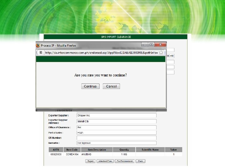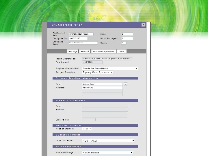 Automated SPS Clearance Workflow • Pre-Clearance – Registration of importers and list of importables with respective agency BAI, BPI and BFAR • SPS Clearance – Online preparation and submission of SPS application with attached support documents, (thru Inter. Commerce Web. CWS) – Automated receipt of application, validation and payment of fees – Online processing – Review, Endorsement and Approval – Remote printing of approved SPS Clearance • Post Clearance – Transmission to BOC-NSW and online access to SPS Agency at country of origin – Quarantine Officers online access to SPS Clearance data prior to actual arrival, and input of findings upon examination