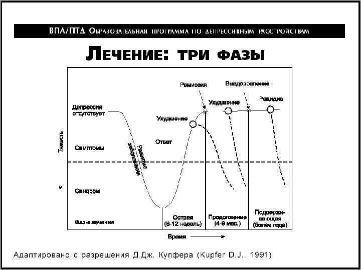 ВОЗРАСТАЮЩАЯ ЧАСТОТА РЕЦИДИВОВ ПРИ ДЕПРЕССИИ 100 90% 90 80 Риск рецидива (%) 70 60 70% 60% 50 40 30 20 10 0 После 1 эпизода депрессии После 2 эпизодов депрессии После 3 эпизодов депрессии American Psychiatric Association. DSM-IV Kupfer D. J. // J. Clin. Psychiatry, 1991; 52. – Suppl. : 28 -34.