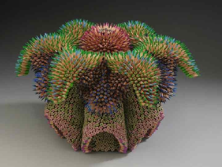 Удивительный скульптор, который нашёл свою нишу в современном искусстве Дженнифер Мэестр. Свои необычные работы она делает с помощью цветных карандашей. На создание таких произведений её вдохновили морские ежи, которые в своих колючках представляют какую -то особенную красоту.