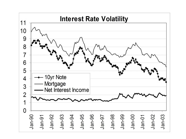 “CORE BUSINESS” APPROACH • The results were the same as GAAP until FAS 133 implemented • The total cost of purchased options (intrinsic and time value) was amortized in a straight-line fashion (constant proportion each period) over expected life of option and this was factored into net interest income. • Benefits from exercising derivatives and from the cash flows from interest rate swaps where factored into the interest expense on borrowings (liabilities) and thus factored into net interest. • To the extent that hedges were successful, the flow of interest revenue and interest expenses -- and the earnings on the net income from interest -- was more steady over time.