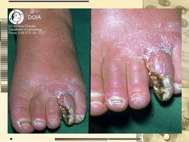 Микология, занимающаяся грибковыми поражениями (от самых поверхностных – кератомикозов, отрубевидного лишая, до глубоких – споротрихоз, хромомикоз), включая дерматомикозы (ногтей и кожи), кандидозы кожи, слизистых;