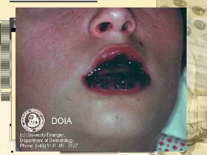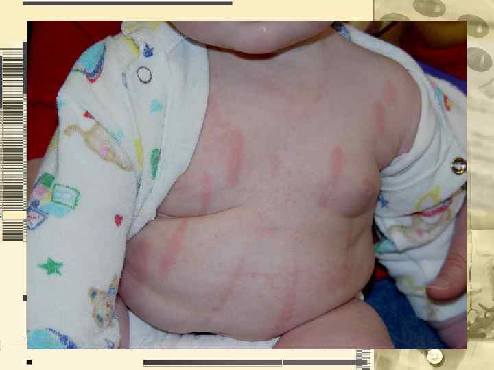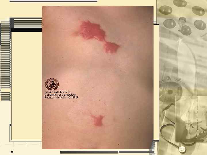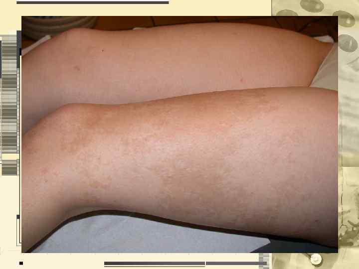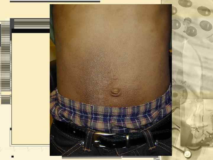 • • Цвет Характеристика тургора неизмененной кожи Характеристика эластичности неизмененной кожи Характеристика пото- и салоотделения Состояние подкожно-жировой клетчатки Состояние волос и ногтевых пластинок Описание всех изменений кожи, не относящихся к патологическому процессу (рубцы, невусы, пигментные пятна и др. ) • Пиломоторный рефлекс • Дермографизм