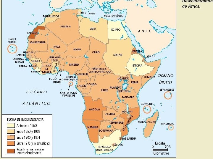 • La mayor parte de África había sido colonizada durante la Repartición de África, en medio del periodo conocido como Nuevo Imperialismo, durante la segunda mitad del siglo XIX.