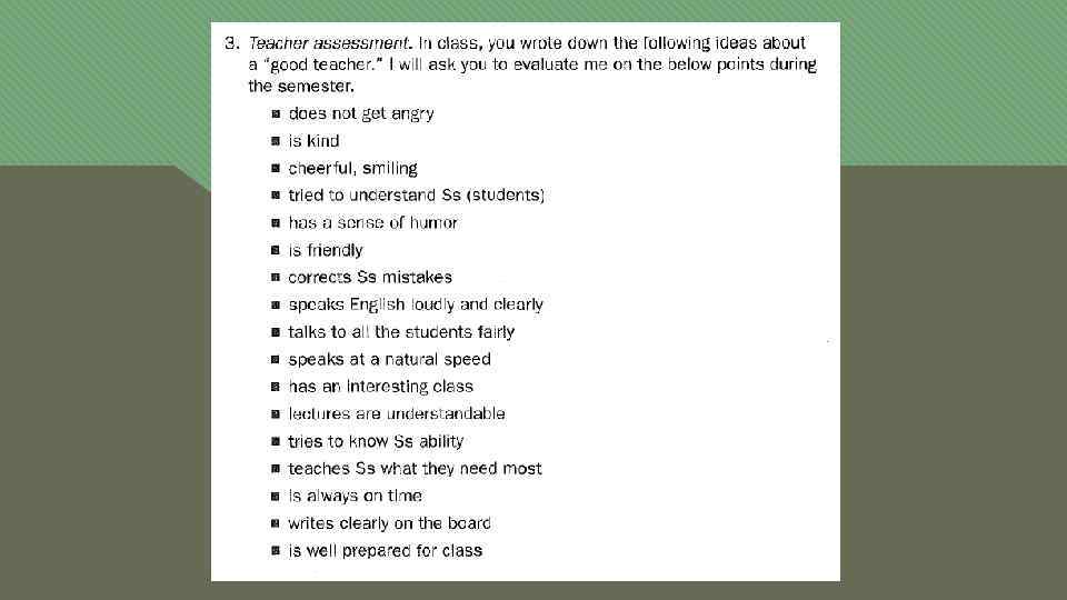 Language Learning Assessment v Who assesses SSs learning? v What is assessed? v Why assess learning? v When can you assess SSs learning? v How can you assess? v What is done with the results of assessment?