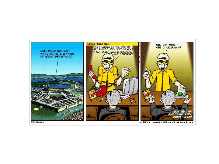 Health through computers • Medical treatment – Web. MD (self-administered) – Bar-code systems at hospital for medicine dispensing – Brain-computer interfaces • Weight management – Exercise “buddy” or “coach” on exercise equipment – Wrist-top coaching systems/Heartrate monitors – http: //www. fitday. com