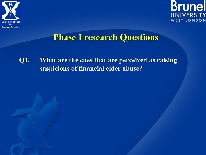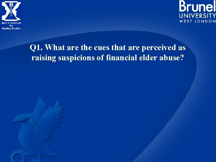 Phase I research Questions Q 1. What are the cues that are perceived as raising suspicions of financial elder abuse?