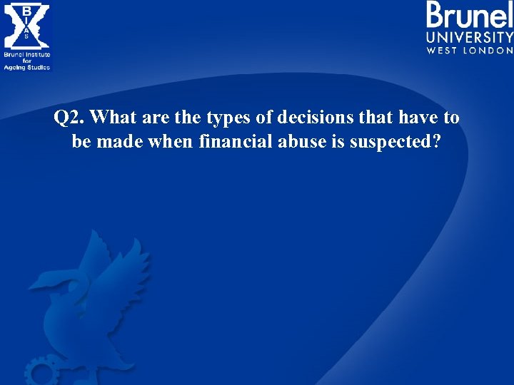 Q 2. What are the types of decisions that have to be made when financial abuse is suspected?