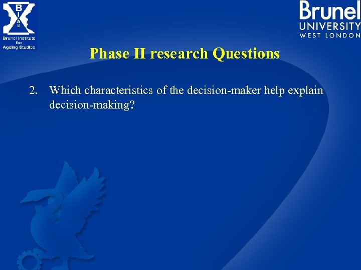 Phase II research Questions 2. Which characteristics of the decision-maker help explain decision-making?