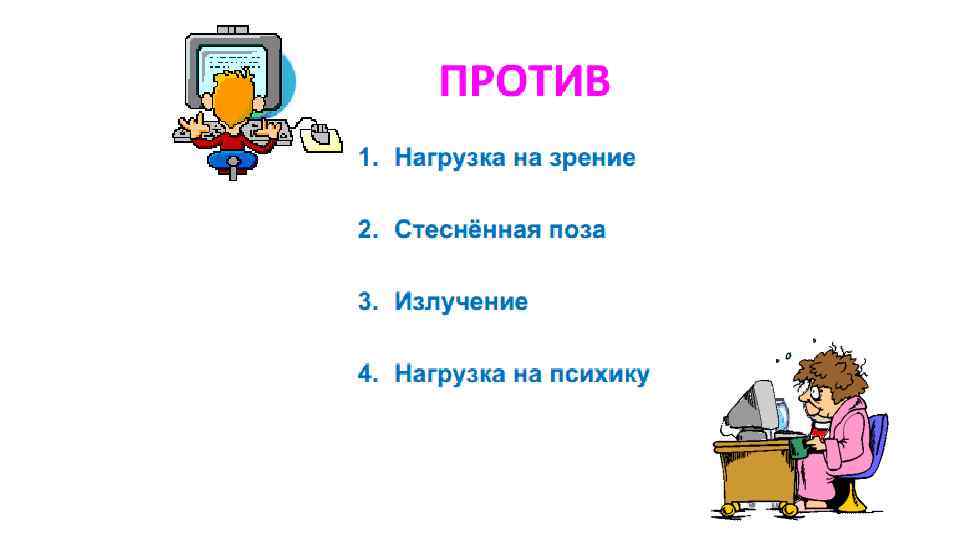 КОМПЬЮТЕРНАЯ ЗАВИСИМОСТЬ. Если первый родительский страх связан с тем, чтобы компьютер не навредил зрению ребенка, то второй — с компьютерной зависимостью. По мнению психологов, она возможна в том случае, когда реальная жизнь изолирована от виртуальной. Чтобы избежать этой проблемы, чаще задавайте себе такие вопросы: «Сколько времени ваш ребенок проводит у компьютера? Назовите несколько событий в жизни ребенка за последние месяцы? В какие игры играет ваш ребенок и что вы знаете об этих играх? Кто впервые показал ребенку компьютерную игру? » Получив честные ответы на эти вопросы, вам станет понятно, что опасаться компьютерной зависимости стоит очень занятым родителям, которым некогда заниматься собственным чадом. Интернет. Он может служить для ребенка источником полезной информации и средством общения со сверстниками, но может приносить и вред.