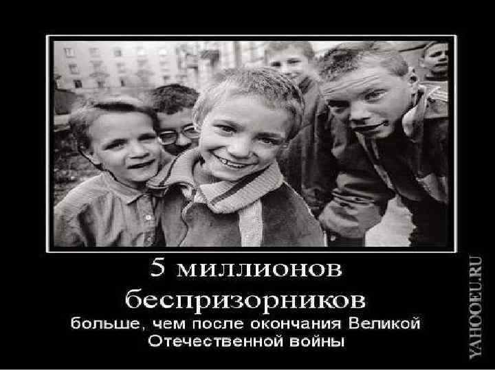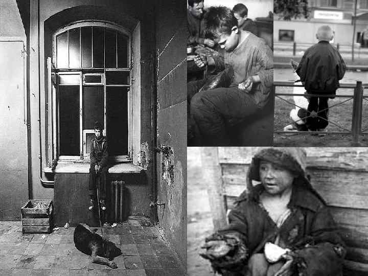 Гражданская война и её последствия l Резко увеличилось число беспризорных детей после Первой мировой войны и Гражданской войны. По одним данным в 1921 году в России насчитывалось 4, 5 млн. беспризорников, по другим — в 1922 году было 7 млн. беспризорников