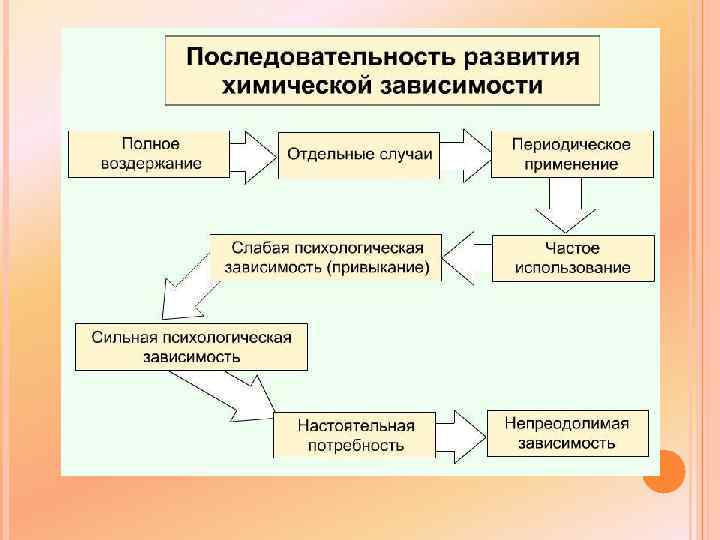 МЕХАНИЗМ РАЗВИТИЯ АЛКОГОЛЬНОЙ ЗАВИСИМОСТИ После употребления вина мозг прекращает выделять собственный эндоэтанол, до тех пор пока алкоголь не метаболизируется. В результате регулярного злоупотребления алкоголем (через 5 -6 лет) мозг перестает вырабатывать его совсем. Поэтому по утрам после выпитого вечером алкоголя болит голова, мышцы, суставы, резко падает настроение, человек недееспособен. Такое состояние в быту называется похмелье, в медицине – синдром абстиненции или синдром отмены. Больной страдает от острого дефицита эндоэтанола, необходимого для поддержания эмоционального и физического тонуса. Это заставляе человека принять с утра дозу алкоголя. Потребность опохмелиться – безусловный признак начинающегося алкоголизма. Утрата рвотного рефлекса на прием больших доз алкоголя - достоверный признак алкоголизма, той стадии когда еще можно надеяться на успешное лечение.