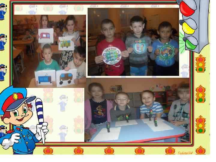 Итоги работы. Дети ориентированы в том, что машины движутся по проезжей части улицы, а пешеходы по тротуару. Знают о назначении светофора. Хорошо ориентируются в пространстве справа, слева, вперёд, назад, вверх, вниз. Имеют представление о видах транспорта, об особенностях их передвижения. Знают, какие правила безопасного поведения необходимо соблюдать на дороге. Дети знают, в каком селе живут и какой у них адрес, безопасный путь от детского сада домой. Ориентированы в том, что на дорогах расположено много дорожных знаков. Знают, называют и объясняют назначение этих знаков.