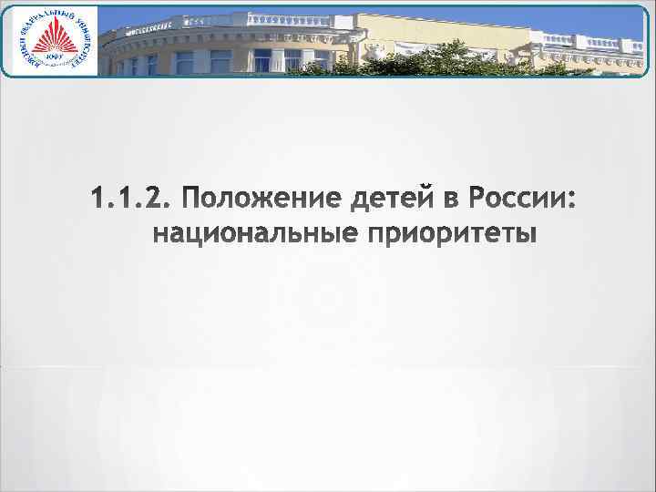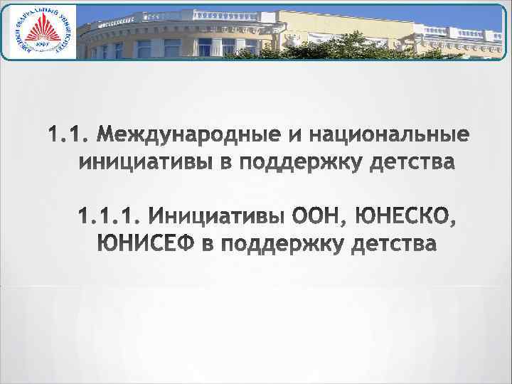 1. Новое понимание детства как стратегического ресурса развития человечества – тренд третьего тысячелетия 1. 1. Международные и национальные инициативы в поддержку детства 1. 1. 1. Инициативы ООН, ЮНЕСКО, ЮНИСЕФ в поддержку детства 1. 1. 2. Положение детей в России: национальные приоритеты 2. Анализ проблем изменяющегося детства, практик развития и социализации в фокусе междисциплинарного и кросскультурного подходов 2. 1. Обзор исследований в России, Европе и США о тенденциях изменяющегося детства 3. Концепт «детское благополучие» : вклад в исследование проблем детства и детского развития *3. 1. история вопроса *3. 2. Индикаторы и индексы десткого благополучия *3. 3.