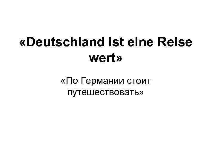 «Deutschland ist eine Reise wert» «По Германии стоит путешествовать»