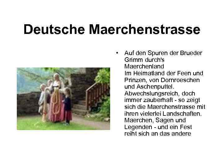 Deutsche Maerchenstrasse • Auf den Spuren der Brueder Grimm durch's Maerchenland Im Heimatland der Feen und Prinzen, von Dornroeschen und Aschenputtel. Abwechslungsreich, doch immer zauberhaft - so zeigt sich die Maerchenstrasse mit ihren vielerlei Landschaften. Maerchen, Sagen und Legenden - und ein Fest reiht sich an das andere