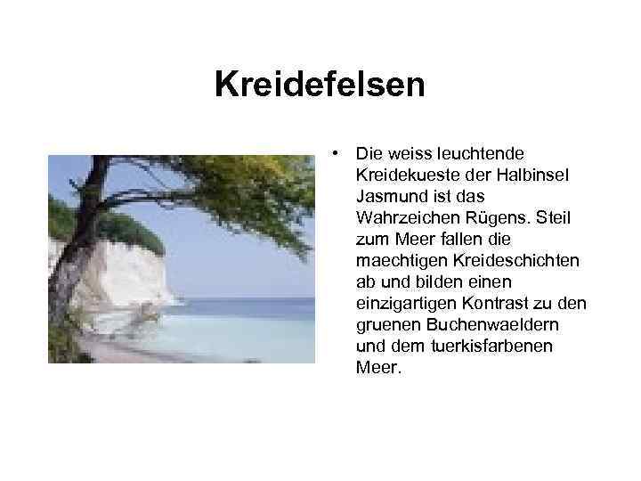 Kreidefelsen • Die weiss leuchtende Kreidekueste der Halbinsel Jasmund ist das Wahrzeichen Rügens. Steil zum Meer fallen die maechtigen Kreideschichten ab und bilden einzigartigen Kontrast zu den gruenen Buchenwaeldern und dem tuerkisfarbenen Meer.