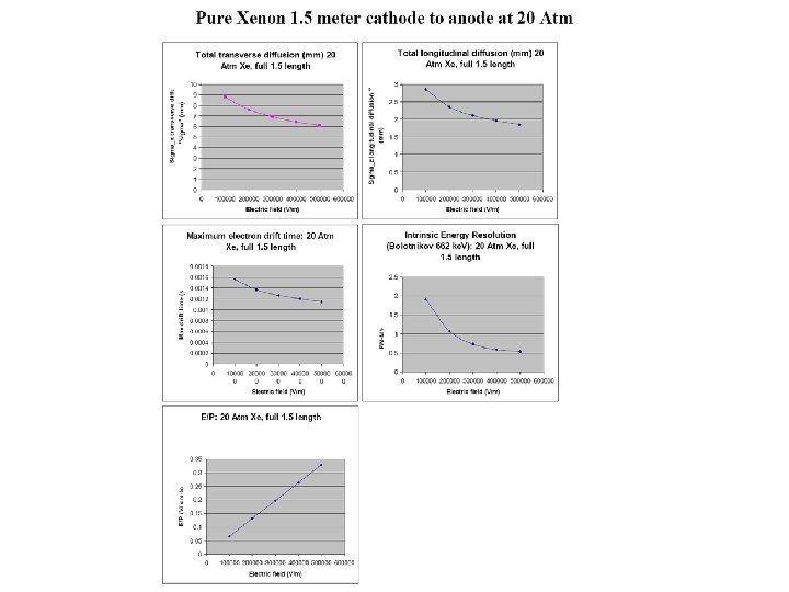 Energy Resolution Factors in Xenon Gas Detectors – Intrinsic fluctuations • Fano factor (partition of energy): small for < 0. 55 g/cm 3 – Loss of signal (primary): • Recombination, quenching by molecular additives (heat) – Loss of signal (secondary): • Capture by grids or electronegative impurities – Gain process fluctuations: • Avalanche charge gain fluctuations are large – Gain process stability: • Positive ion effects, density and mix sensitivity, . . . – Long tracks extended signals • Baseline shifts, electronic non-linearities, wall effect, . . .