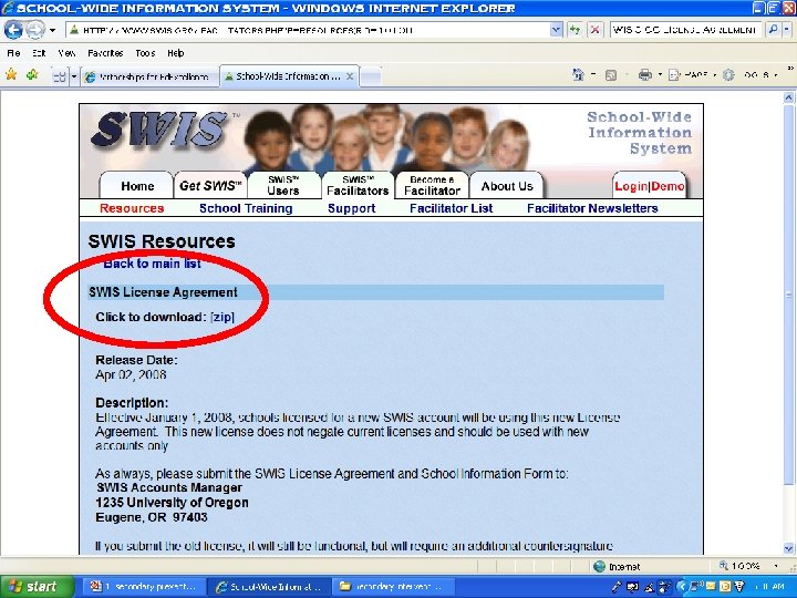Completing CICO-Readiness & Licensing • All readiness requirements completed • Data entry format is defined for CICO-SWIS – Number of periods – Title for periods – # of points possible period – Order of periods for data entry • CICO-SWIS License Agreement signed and sent to SWIS Management (UO, same address) • Notification received that CICO-SWIS is activated in school account