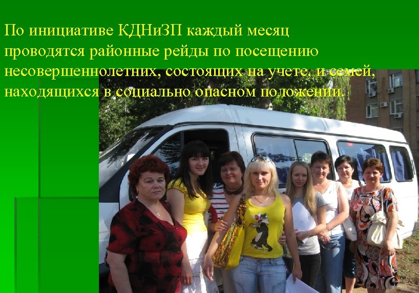 По инициативе КДНи. ЗП каждый месяц проводятся районные рейды по посещению несовершеннолетних, состоящих на учете, и семей, находящихся в социально опасном положении.