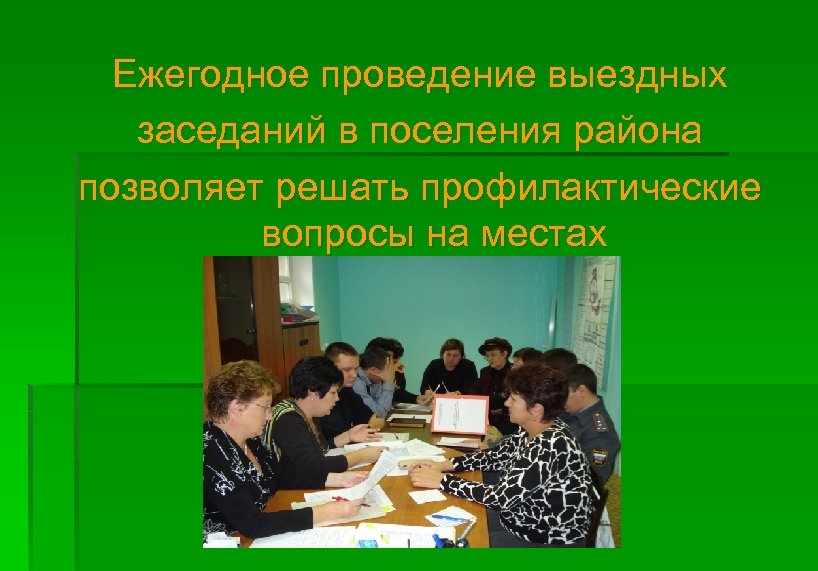 Ежегодное проведение выездных заседаний в поселения района позволяет решать профилактические вопросы на местах