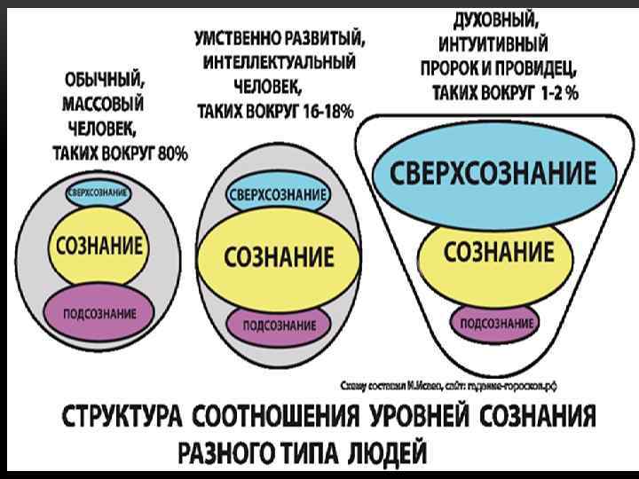 УРОВНИ СОЗНАНИЯ • Подсозна ние — устаревший термин, применявшийся для обозначения психических процессов, протекающих без отображения их в сознании и помимо сознательного управления. • СВЕРХСОЗНАНИЕ — разновидность неосознаваемого. Это — эмоционально-образная активность по разрешению сложных эмоциональных задач, попытка выхода из трудных ситуаций.