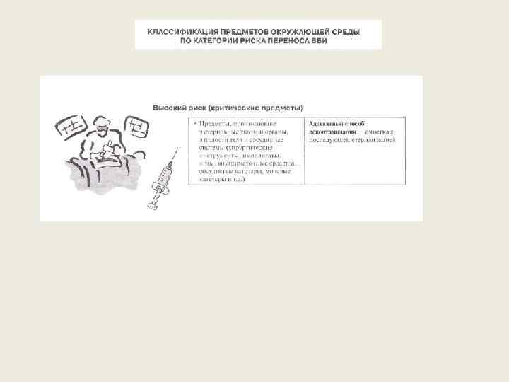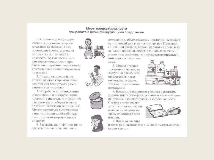 Термины и определения Деконтаминация процесс удаления или уничтожения микроорганизмов с целью обезвреживания и защиты. Включает: дезинфекцию, очистку, стерилизацию. Дезинфицирующий агент действующее вещество (ДВ), обеспечивающее уничтожение патогенных и условно патогенных микроорганизмов на (в) объектах окружающей среды. Дезинфицирующее средство физическое или химическое вещество, включающее дезинфицирующий агент – дезинфицирующее вещество (ДВ). Дезинфекционные мероприятия работы по профилактической дезинфекции (дезинфекция, деконтаминация, дезинсекция, дератизация), очаговой дезинфекции (текущая и заключительная дезинфекция, дезинсекция, дератизация, ) а также по дезинфекции, предстерилизационной очистке и стерилизации изделий медназначения.