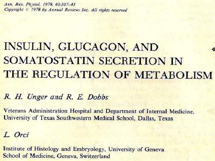 ПАРАКРИННЫЕ ВЗАИМОВЛИЯНИЯ В ПО (Unger, R. H. , Dobbs, R. E. , Orci, L. , 1978)