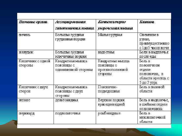 Лечение висцеральных нарушений • ММТ мышц ассоциированных органам, прикрепляющихся к диафрагме. • Провокация мест прикрепления значимого органа и повторное ММТ • Лечение мест прикрепления органов к диафрагме
