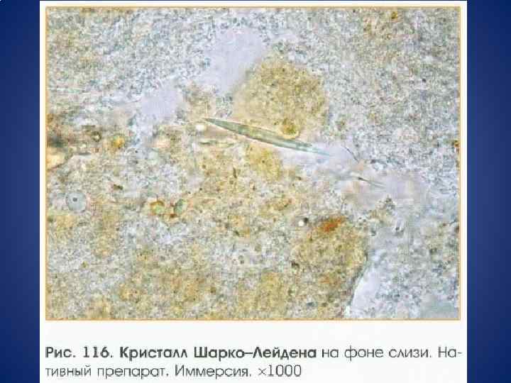 Кристаллы Шарко – Лейдена Продукты кристаллизации белков образующихся при распаде эозинофилов