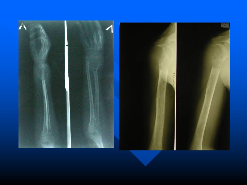 Остеогенная саркома Частота от 40% до 56% - 80% Чаще в метафизах длинных костей, а после синостоза распространяется и на эпифиз Формы: Остеолитическая Остеопластическая