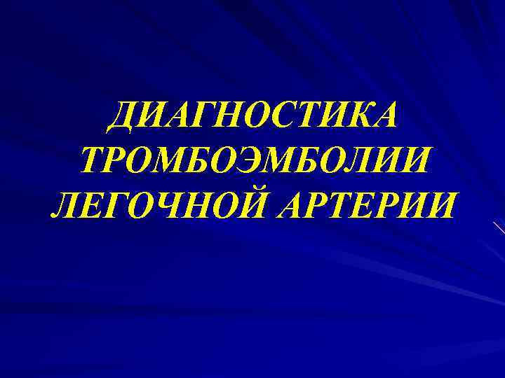 ДИАГНОСТИКА ТРОМБОЭМБОЛИИ ЛЕГОЧНОЙ АРТЕРИИ