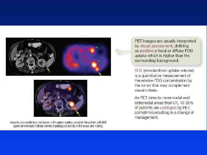 Chłoniaki złośliwe monitorowanie leczenia Kontrolne badania obrazowe / trepanobiopsja ocena stopnia remisji choroby Specyficzne kryteria oceny odpowiedzi na leczenie Badanie PET/CT – po zakończeniu leczenia Znaczenie rokownicze