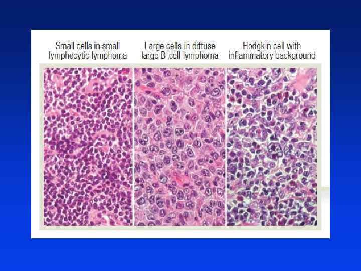 Chłoniak Hodgkina (HL) l Dwa szczyty zachorowań 20 -40 r. ż. i 50 -60 r. ż. . l Dość wolno powiększające się, niebolesne, obwodowe węzły chłonne l Dość często obecne objawy ogólne l Może wystąpić zespół żyły głównej górnej l Mogą być zajęte wątroba, śledziona, płuca i szpik kostny l Komórki Reed-Sternberga: CD 30+ i CD 15+, niekiedy CD 20+ i negatywne CD 45 -.