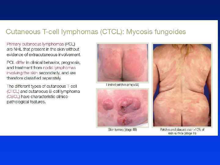 Dwie triady objawów l Pierwsza triada objawów: – Niebolesne, powiększone obwodowe węzły chłonne – Limfadenopatia w obrębie śródpiersia – Objawy ogólne (obecne u około 30% - 40% chorych) l Druga triada (objawy ogólne - B): – Gorączka (>38 stopni) – Nasilone pocenie, szczególnie w nocy (zlewne poty) – Utrata wagi (>10% w ciągu ostatnich 6 miesięcy)
