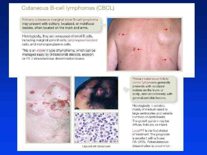 Pierwotne chłoniaki skórne mycosis fungoides, zespół Sezary`ego PUVA (psoraleny + UVA), UVB Cytostatyki miejscowo Radioterapia PUVA + interferon / retinoidy Beksaroten Denilukin diftitox Chemioterapia systemowa