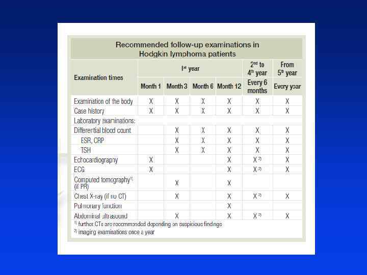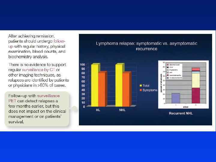 Powikłania skojarzonej terapii chłoniaków złośliwych Potencjalnie śmiertelne l Ostra białaczka szpikowa wzrost ryzyka 5 - 8 lat po leczeniu l Chłoniak złośliwy ryzyko od 1. 2% do 2. 1% w ciągu 15 lat od leczenia l Guzy lite (np. rak piersi, płuca) prawd. wzrost ryzyka 10 -15 lat po leczeniu l Posocznica bakteryjna (jako powikłanie splenektomii lub napromieniania śledziony)