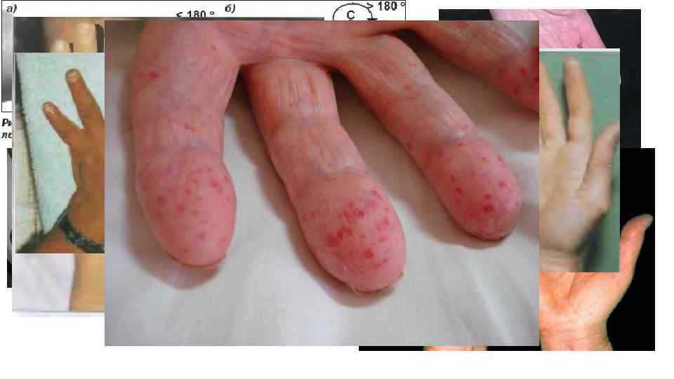 Руки пациента • Патология сердечно-сосудистой системы • Патология опорно-двигательной системы • Патология желудочно-кишечного тракта Синдром Кронкхайта-Канада • Патология нервной системы