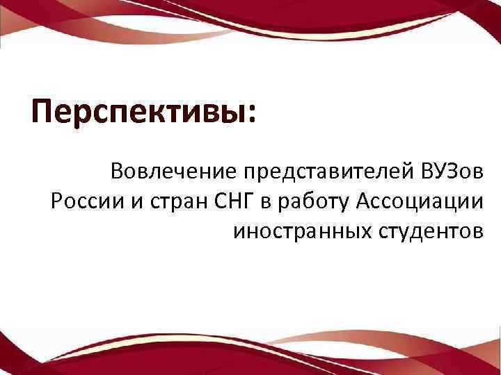 Перспективы: Вовлечение представителей ВУЗов России и стран СНГ в работу Ассоциации иностранных студентов