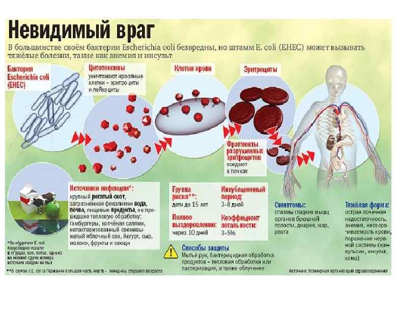 Энтерогеморрагические E. coli (ЭГКП, EHEC) n n Острые кишечные инфекции с проявлениями геморрагического колита (ГК) и гемолитикоуремического синдрома (HUS), вызываемые эшерихиями, продуцирующими шигатоксины (STEC), распространены во многих странах мира и регистрируются в виде спорадических случаев или вспышек с охватом больших количеств людей: от десятков до нескольких тысяч. Заражение происходит при употребления недоброкачественных мясных продуктов, непастеризованного молока, йогуртов, сыра, овощей, шпината, разных салатов, пророщенных зерен бобовых, соков, других пищевых продуктов и воды, обсемененных STEC-бактериями. Возможно заражение людей при контакте с сельскохозяйственными и домашними животными, а также при непосредственном контакте с больными STEC-инфекцией. Штаммы EHEC представляют серьезную угрозу жизни особенно для пожилых людей и детей до 5 лет. Источником и основным резервуаром этого патогена являются сельскохозяйственные животные: крупный рогатый скот, овцы, козы, свиньи и птица, а также дикие животные.