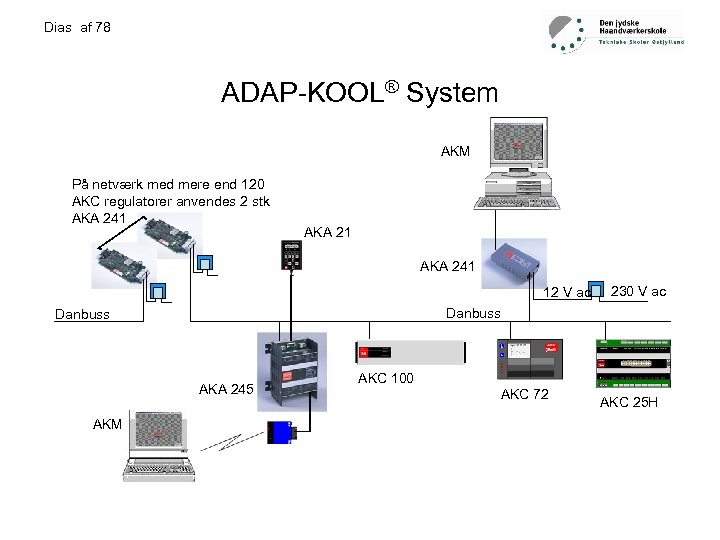 Dias af 78 ADAP-KOOL® System AKM På netværk med mere end 120 AKC regulatorer anvendes 2 stk AKA 241 12 V ac Danbuss AKA 245 AKM 230 V ac AKC 100 AKC 72 AKC 25 H